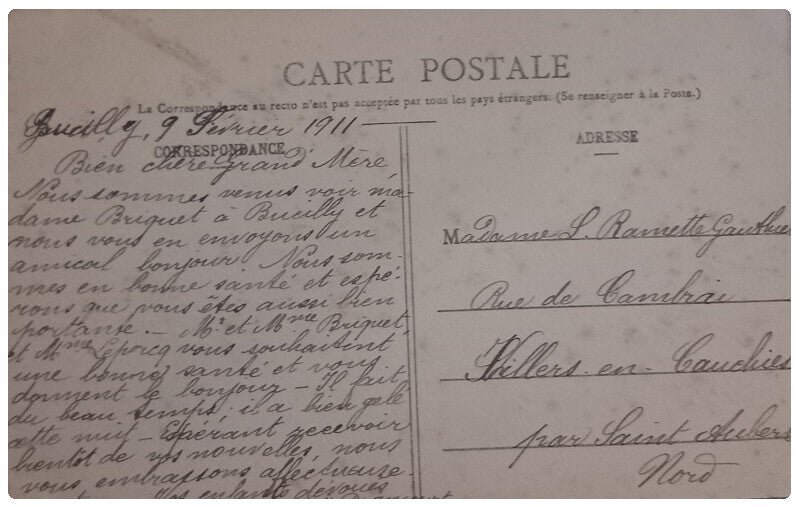 Cartes postales de l'Aisne écrite aux dos année 1911