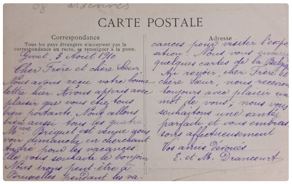Cartes postales des Ardennes écrite aux dos