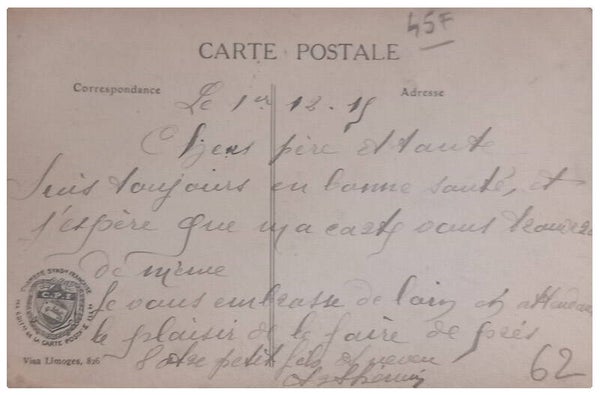 Cartes postales du pas de Calais écrite aux dos